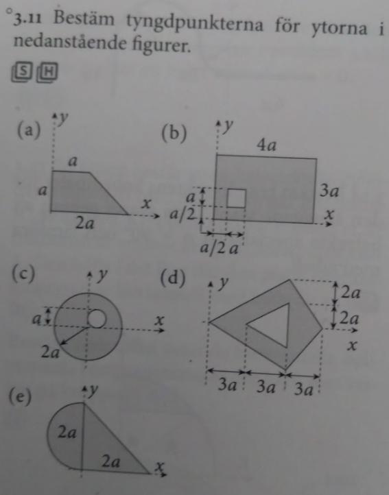 D4NIEL skrev:Var noga med att du förstår hur man hittar tyngdpunkterna för den lilla kvadraten (hålet) och den stora rektangeln. Tyngdpunkterna ligger på symmetrilinjerna i respektive figur. Men det gäller alltså att hitta punkterna i koordinatsystemet också.