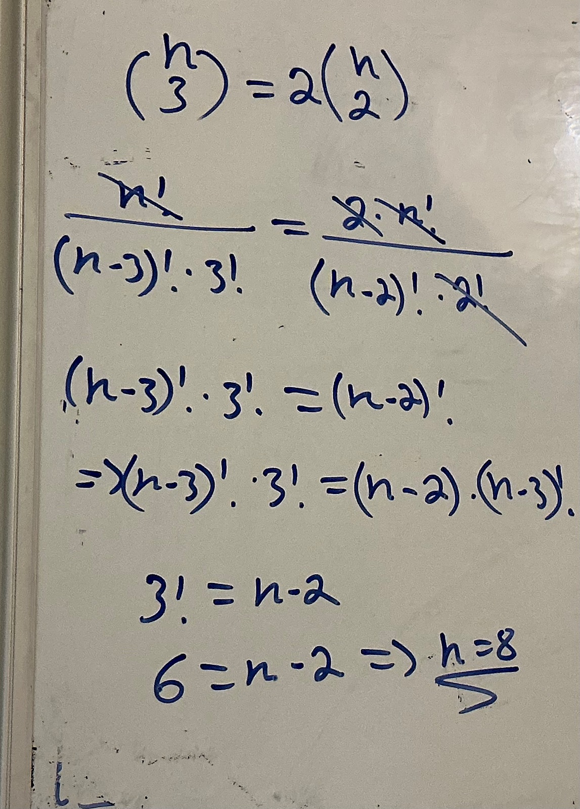 Du kan ju alltid prova att sätta in n=8 och kontrollera din lösning. Det är en god vana vid ekvationslösning.