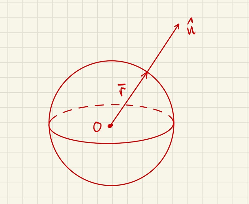 På varje sfär med centrum i origo så ges den utåtriktade enhetsnormalen av rr, så speciellt för enhetssfären så har vi att n^=r.