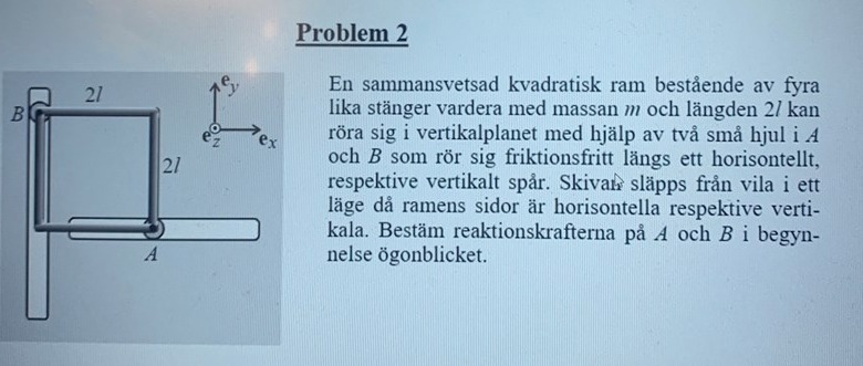 Hitta normalkrafter Na, Nb för en sammansvetsad kvadratisk ram som släpps från vila.