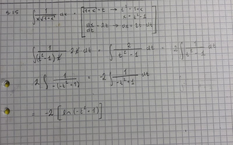 Räknade om uppgiften från början nu. Gjorde samma variabelbyte, men blev osäker på vad jag egentligen ska derivera. Såhär blev det nu: