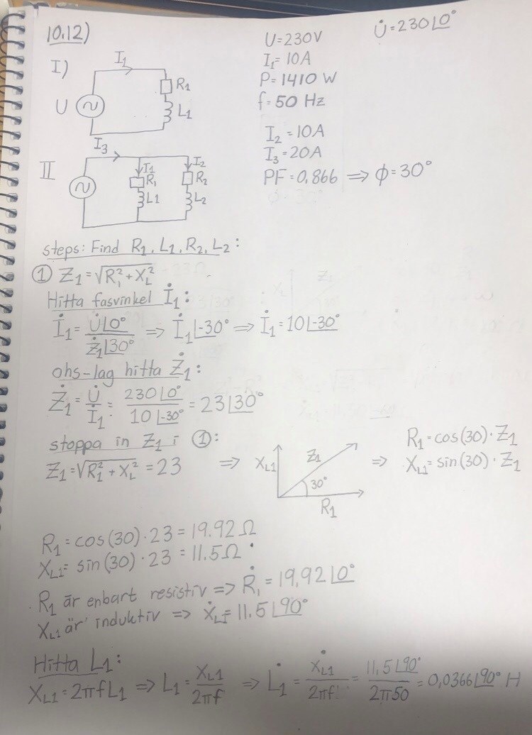 jag bifogar bilder på uppgiften och min påbörjade lösning. Jag misstänker att jag gör något knasigt då jag får konstiga(?) värden på min första induktans. Kan ni se om jag gjort något fel i min uträkning?