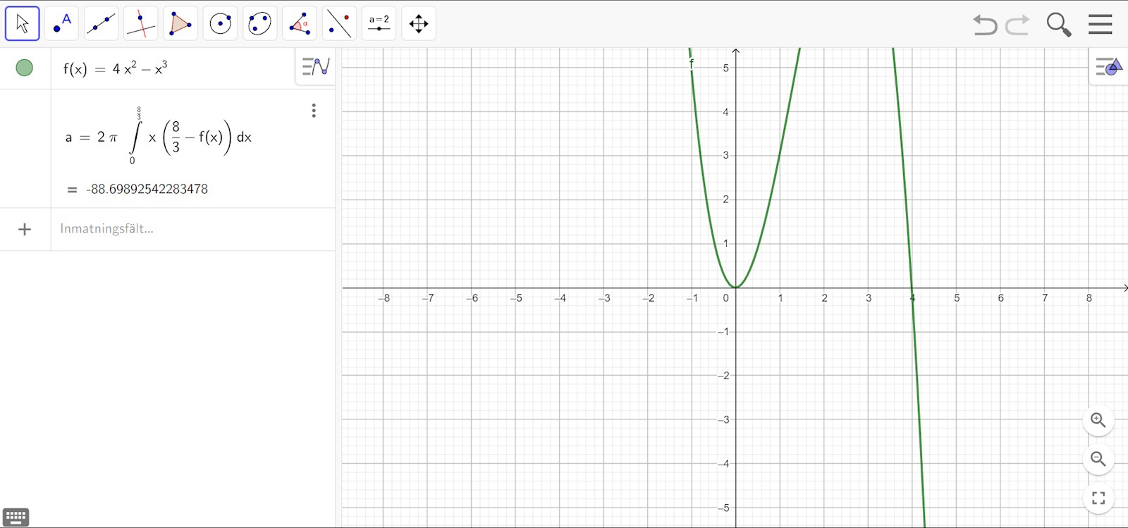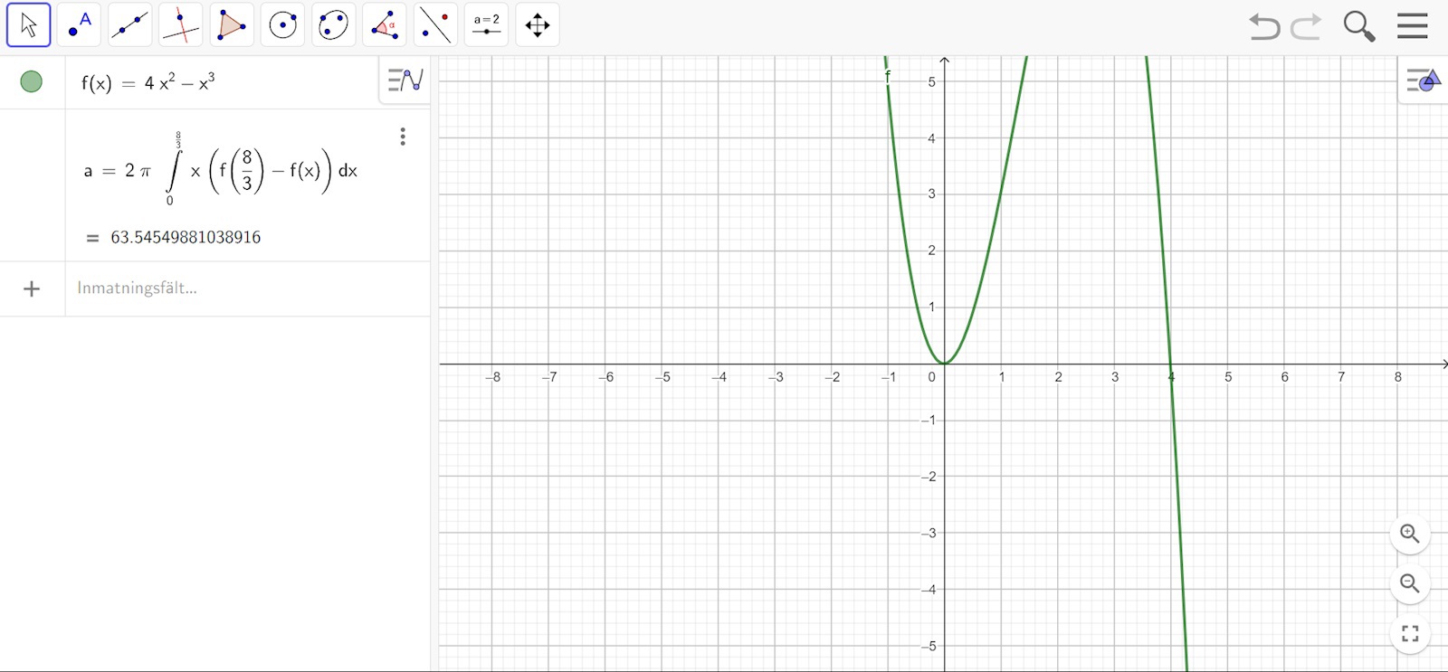 Hitta rotationvolym runt y-axeln med GeoGebra