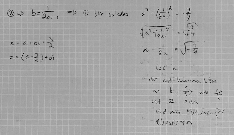 Vad får du när du kvadratkompletterar? Och vet du hur du kan hantera roten ur komplexa tal genom att ansätta (a+bi)^2=z ?