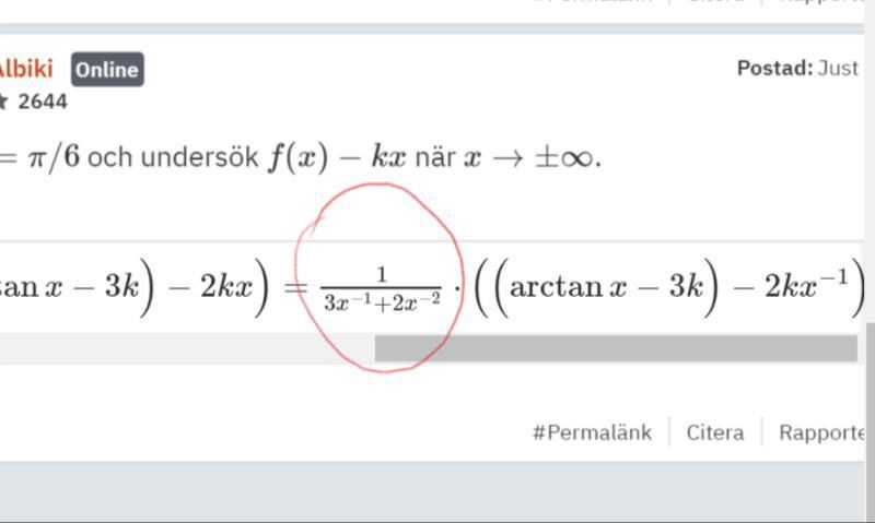 jo jag har oxå kommit så långt men 1/(3/x+2/x^2) (det jag ringade in) då x-->oändligheten blir ju 1/0 vilket man inte får göra