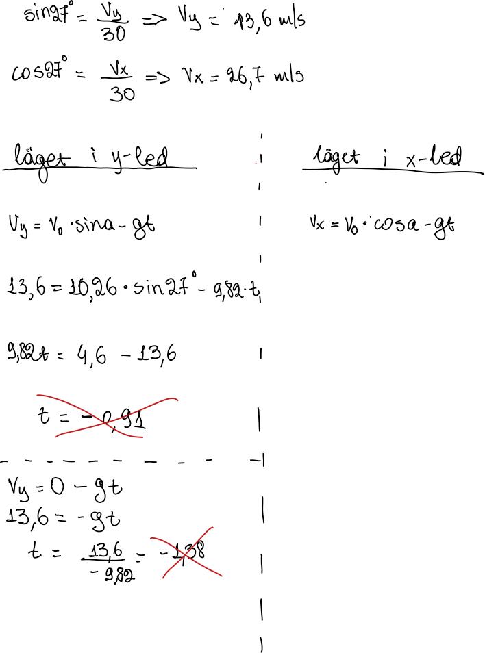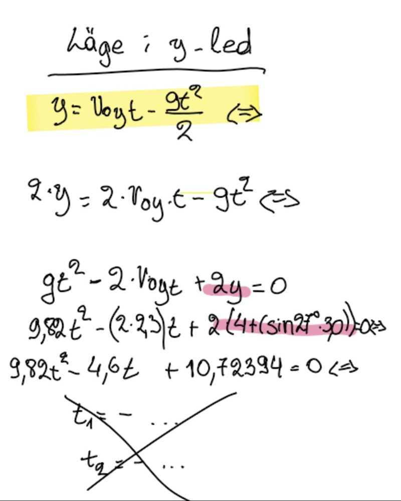 - Det är oklart varför du subtraherar gt2/2 från v0yt istället för att addera (vi saknar en riktning och därmed ledning kring tecknen här).