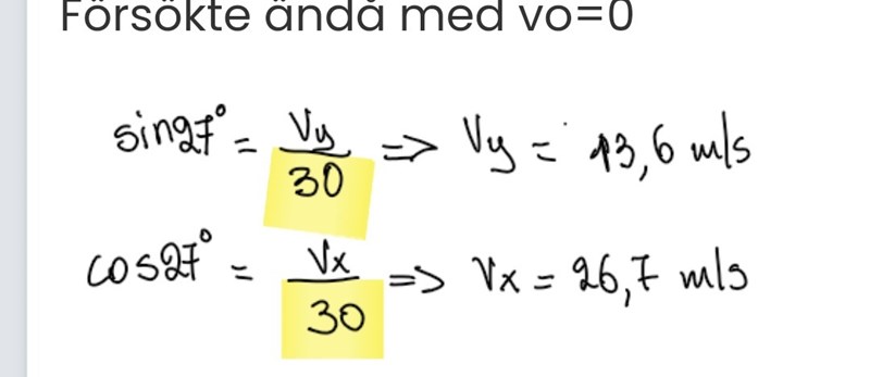 Du kan nu beräkna x- och y-komposanterna av denna urprungshastighet enligt
