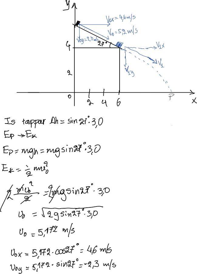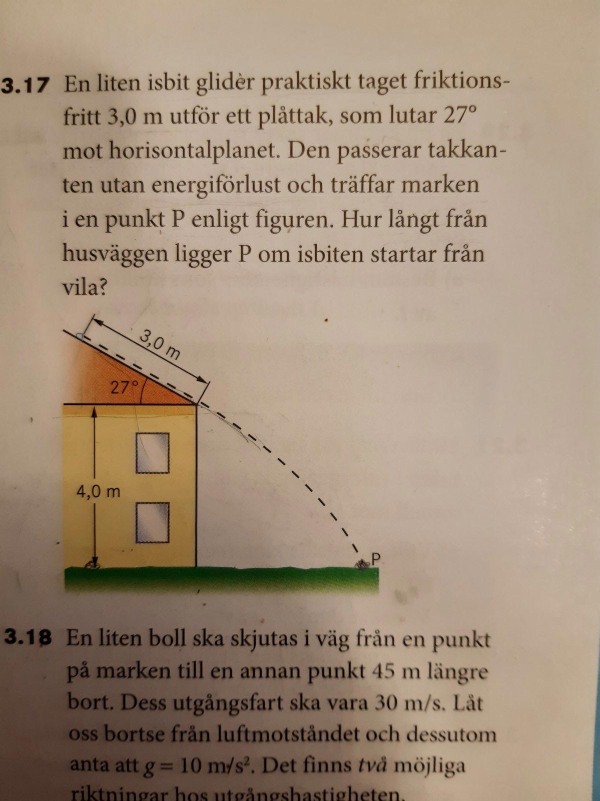 Tack vare dina tips, kunde jag gå vidare men har fastnat på Vo. Jag tror att Vo kan inte vara lika med noll för isbiten glider längs med taket. Försökte ändå med vo=0