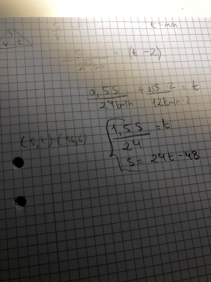 Min lösning: 24km/h = y min 24 km/h i 0.5 x + 12 km/h i 0.5 x = y+2 min