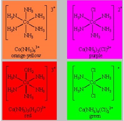 För ditt exempel med kobolt är koordinationsnummret 6 i samtliga komplex, precis som antalet ligander. Oxidationstalet för den centrala jonen/atomen beror på komplexet, men kan även påverkas av pH.