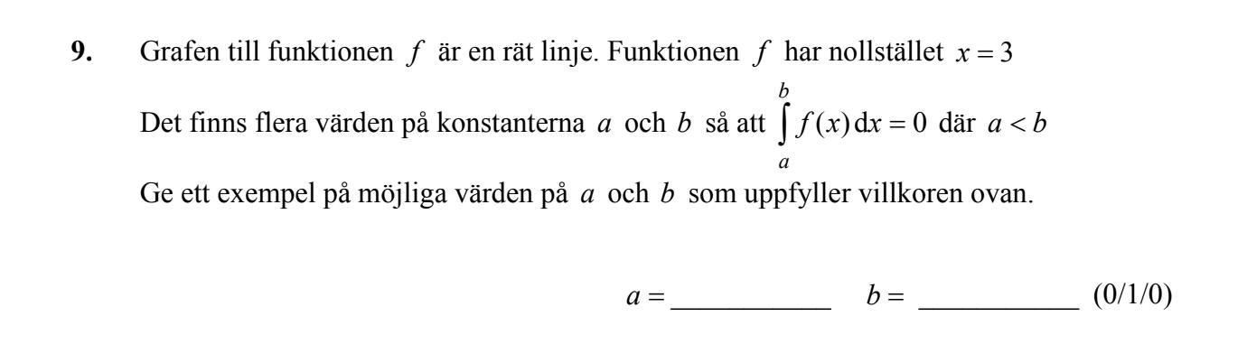 Du kommer att få två triangelformade områden i grafen, ett nedanför och ett ovanför x-axeln, eller hur? Vad måste gälla för att integralen skall ha värdet 0?
