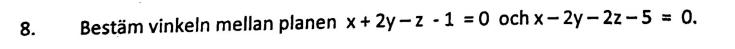 Hitta vinkel mellan två plan: svara med vilken vinkel?