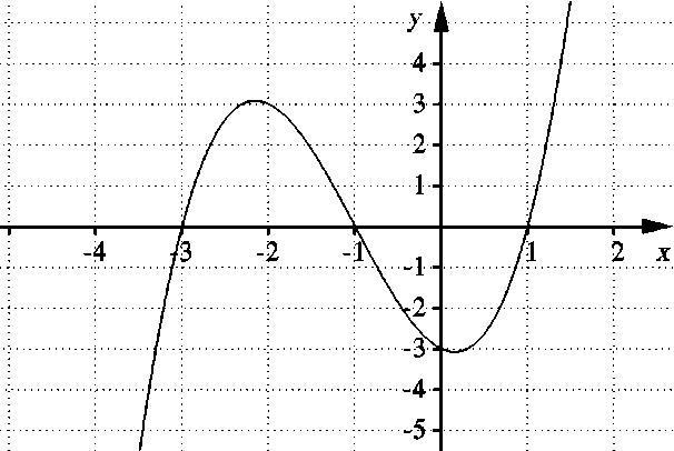 Ja kurvan skär igenom -1, -3 och 1 på x-axeln och detta kallas väl nollställen om jag inte är ute och cyklar?