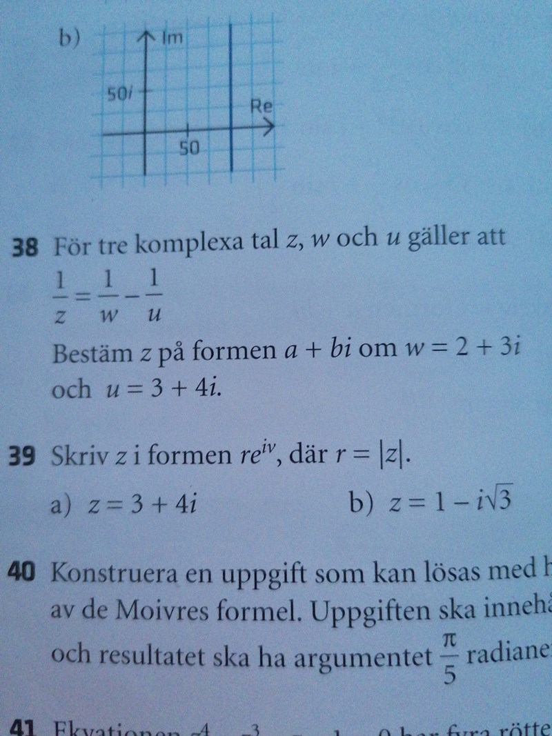 hitta z på formen a+bi genom att man vet att 1/z=(1/w)-(1/u)