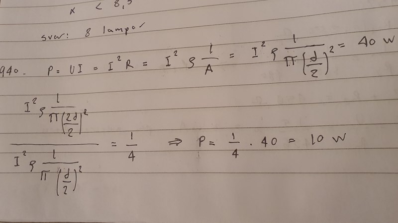 Facit säger 4 × 40 W, alltså inte 1/4 × 40 W. Men jag förstår inte varför jag kommer fram till det andra.