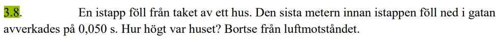 För att komma upp i ungefär 20 m/s behöver istappen falla ungefär två sekunder. Två sekunders fritt fall ger sträckan ungefär tjugo meter. Klart.