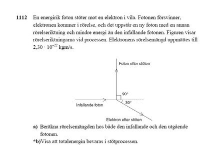 a) Beräkna rörelsemängden hos både den infallande och den utgående fotonen.