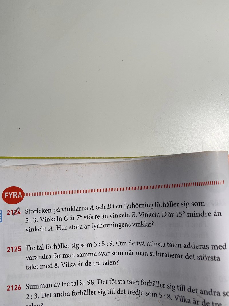 när det står att förhållandet är 5:3 så betyder det att A= 5x och B= 3x därefter blir C= 3x+7 och