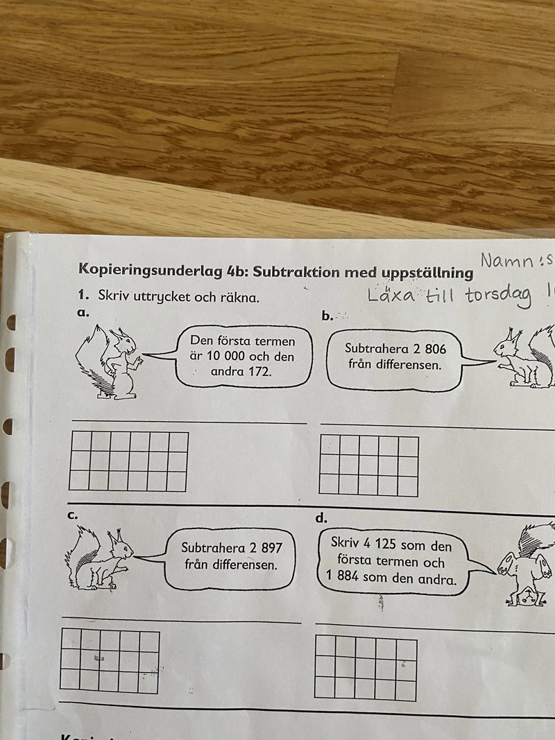 Behöver ni hjälp med själva subtraktionen?