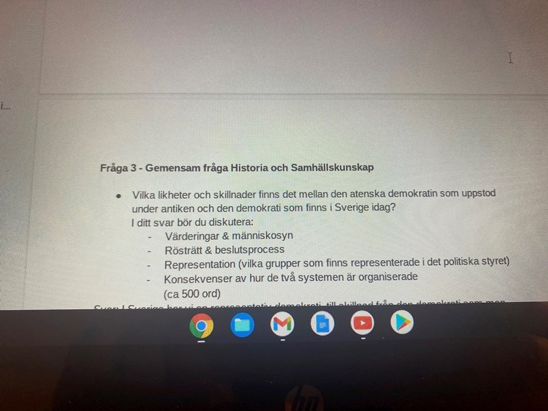 Du ska jämföra Antikens demokrati med den som vi har i Sverige idag.