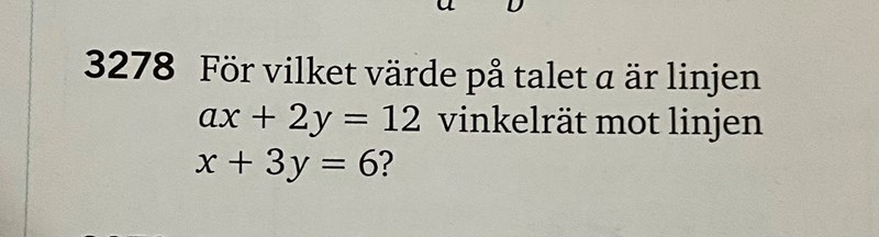 Bestäm koefficenten a så att linjerna är vinkelräta