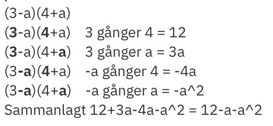 Multiplicera först två av parenteserna. Sätt svaret i parentes. Sen multiplicerar du ihop den nya parentesen med den sista parentesen. Efter det räknar du ihop de termer som kan adderas.
