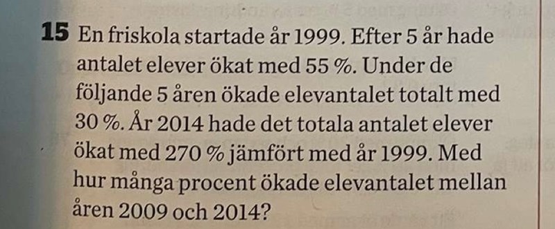Vi vet att 1999 till 2014 motsvarar en förändringsfaktor på 3,7 vilket ger att det år 2014 finns 3,7x på skolan