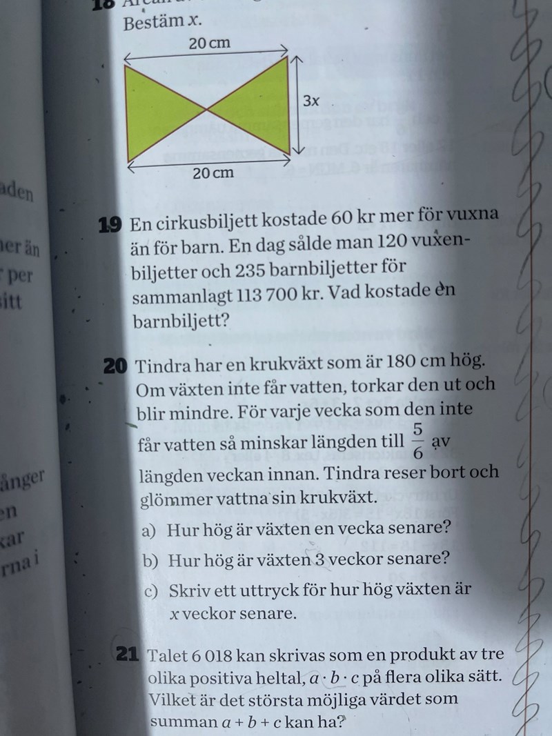 På fråga b ska du bara göra processen två gånger till, så du vet hur det är efter 3 veckor. Kom ihåg att gång nummer två så får du utgå från att den nu är 150 cm