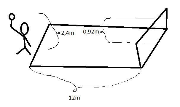 idkidc22 skrev :Behöver hjälp med denna uppgift: Slår med hastigheten 26m/s horisontellt. Nätets överkant ligger 0,92 m över marken. Luftmotstånd försummas, kommer bollen över?