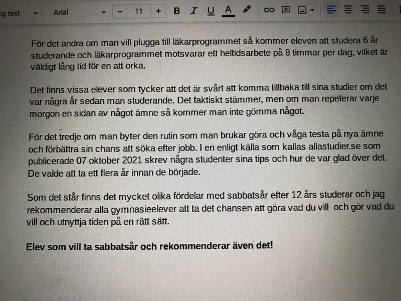 -rubriken hade kunnat göras kortare och kanske ännu med intresse väckande! Ex. ”Välj ett ledigt år för din skull” (kommer inte på något i nuläget men något som är mer intresseväckande!)