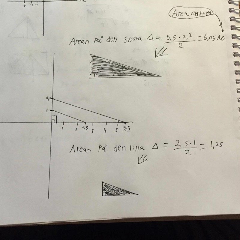 Ledtråd:   Det finns 2 trianglar Den ena har höjd:1 Bas:2,5 och den andra har höjd:2,2 och bas 5,5 (Med 2 trianglar menar jag förstås 2 trianglar i kordinatsystemet)