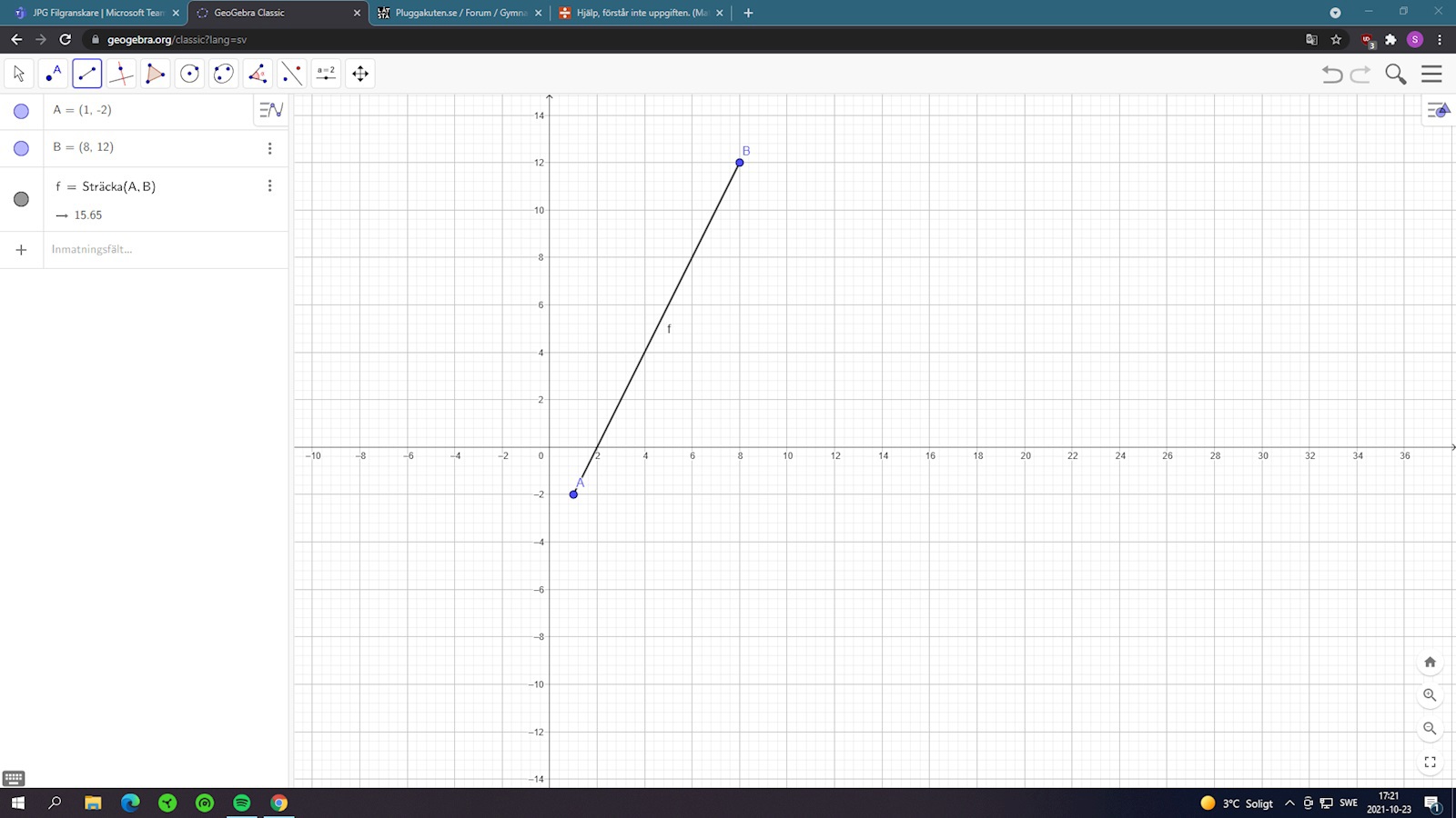 Prova finna samband med en rätvinklig triangel och punkterna.