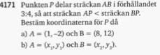 Du ska hitta en punkt P som ligger på sträckan du har ritat, och den ska dela den sträckan i förhållandet 3:4.