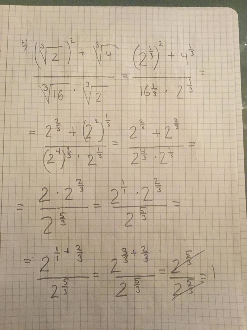 Men du kan få tipset att skriva om så att du har fyra potenser av typen 2a32^{\frac{a}{3}} med olika värden på aa och räkna vidare därifrån. Behöver du mer hjälp, så visa hur långt du har kommit och fråga igen.