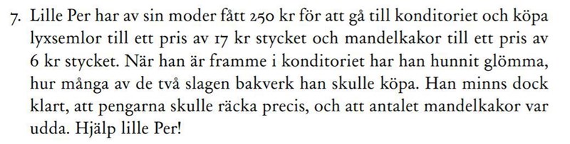 Men då är antalet mandelkakor jämnt, inte udda. Nog för att semlor är godare än mandelkakor, men Pers mamma blir nog inte glad när han kommer hem...
