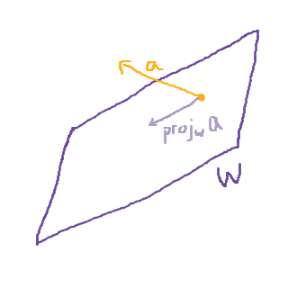 - a ligger redan i planet W, och projiceras då på sig själv. Då måste vi ha en till vektor för att bestämma W.