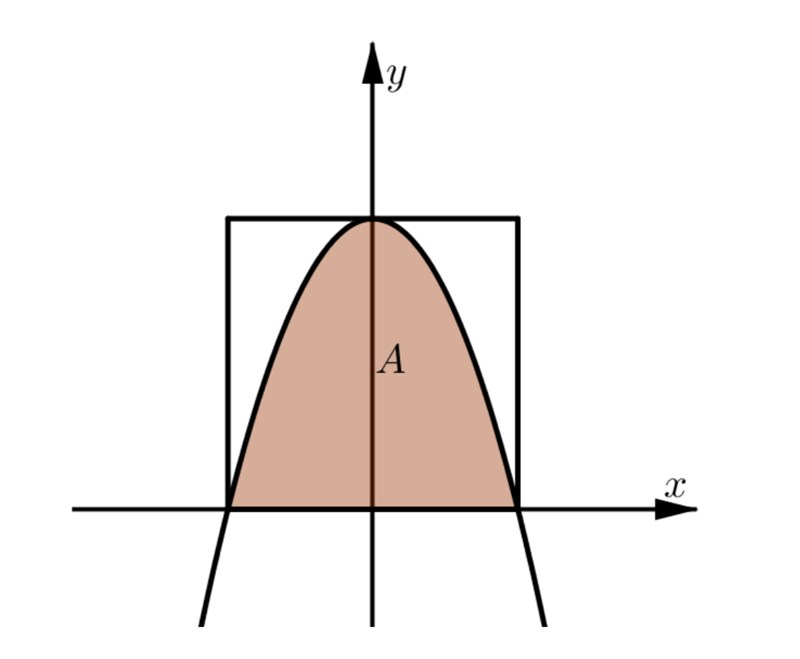 Grafen till funktionen , där a > 0, innesluter tillsammans med x-axeln en begränsad area A . En rektangel har sina nedre hörn där , och dess övre sida tangerar grafen till i dess maxpunkt.