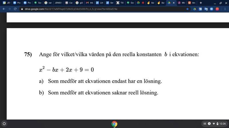 Hjälp med andragradsekvation 75) bestäm värdet på B