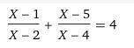 Det jag inledningsvis försökte var att skriva vänsterledet som en enda fraktion där täljaren är (x-2)(x-4).
