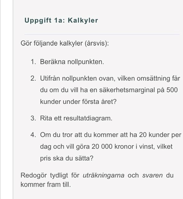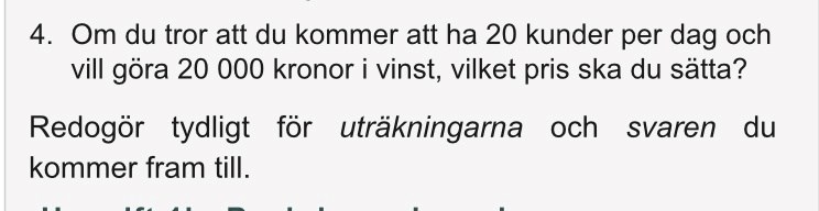 ”Om du tror att du kommer att ha 20 kunder per dag och vill göra 20 000 kronor i vinst, vilket pris ska du sätta?”