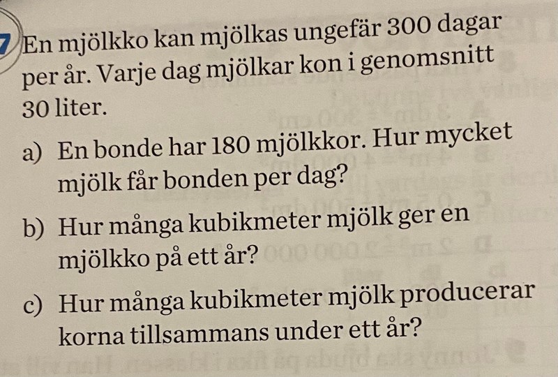 Om frågan varit 'Hur mycket mjölk producerar korna tillsammans under ett år', så måste svaret innehålla även enheten. Men det är aldrig fel att ha med enheten i svaret, jag tycker att det är alltid så man ska svara.