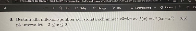 när jag deriverar uttrycket får jag fel svar! Skulle nån kunna hjälpa mig med deriveringen?