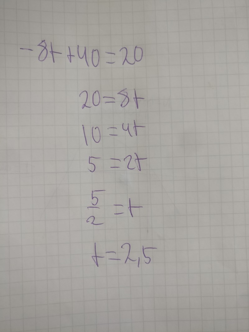 Jag fortsätter min uträkning med din hjälp och får då fram att t=2,5.