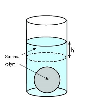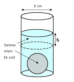 Det är så mycket vatten som trängs undan av kulan.Fick att höjden är 4,68 cm?