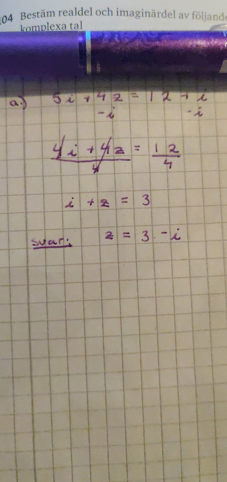 jag fick svaret till 4i är det rätt?