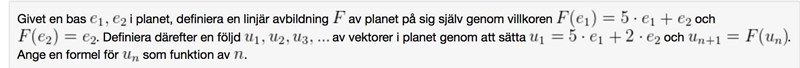 Jag har svårt att se hur jag kan ange en formel för det.. koefficient framför e1 verkar smidigt multipliceras med 5 varje gång, däremot tillväxten av e2 är mycket mer kaotisk.