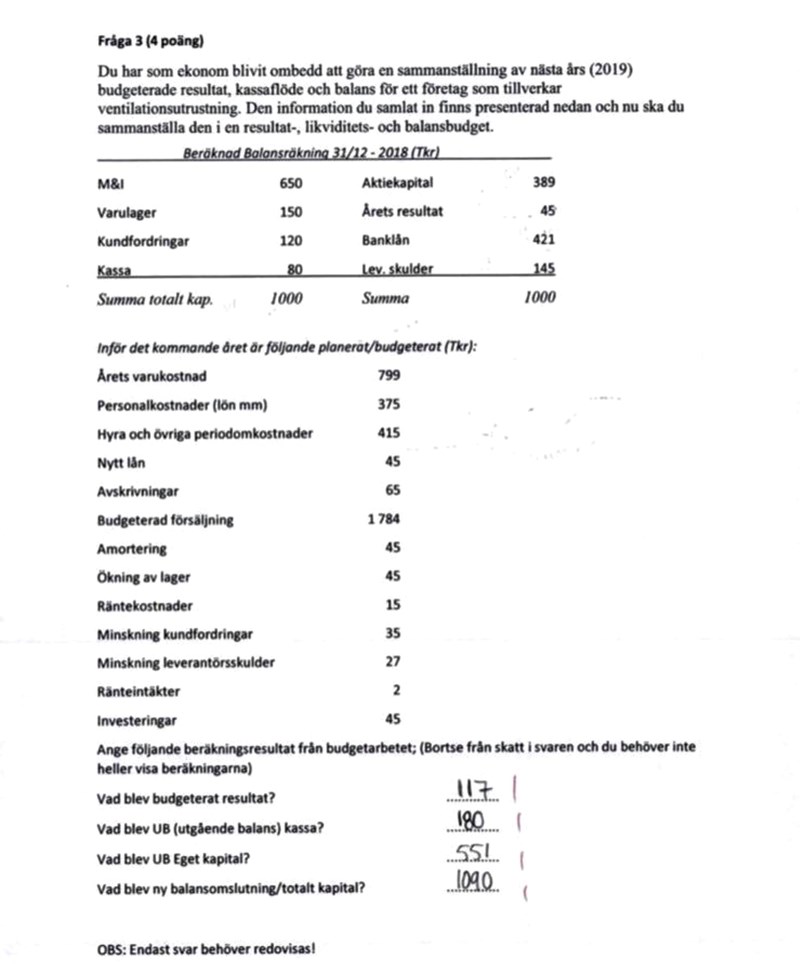 Jag kollar på en gammal tenta inför en tenta jag ska göra i ekonomistyrning men får inte riktigt den att gå ihop. Tänkte om det är någon som kan detta och kan hjälpa mig med lösning till denna fråga. Hade verkligen uppskattats.