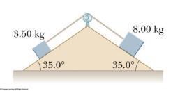 b) Hur ska man räkna ut den statiska friktionskoefficienten mellan klossen 3.50kg och underlaget? Då kan friktionen mellan klossen 8.00 kg och underlaget försummas.
