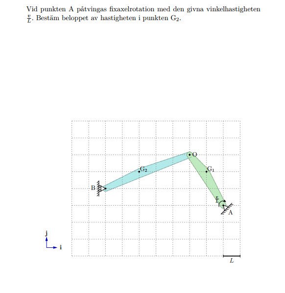 En stel kropps rörelse kan alltid ses som en translation och en rotation. Uppgifter av den här typen går nästan alltid ut på att bestämma hastighet och/eller acceleration för ett antal punkter kopplade genom enkla geometriska samband / reducerade frihetsgrader samt de två grundformlerna. Eftersom räkningarna innehåller såväl rotation som translation är det mycket viktigt att hålla ordning på riktningar och alltid göra en "sanity check".