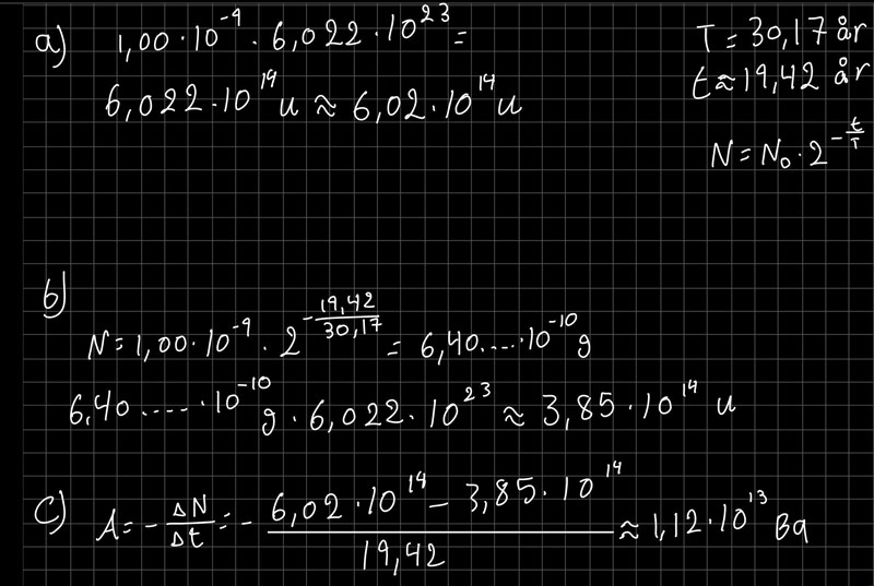 a) Hur många kärnor av Cs-137 innehöll preparatet från början?